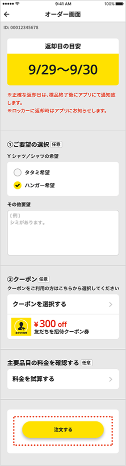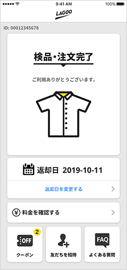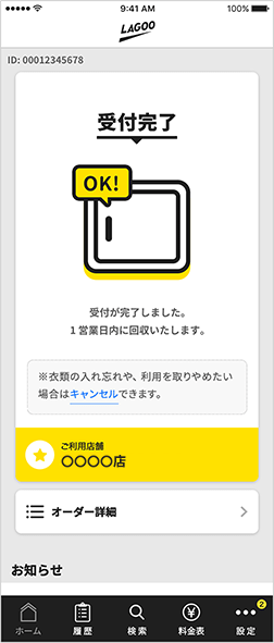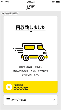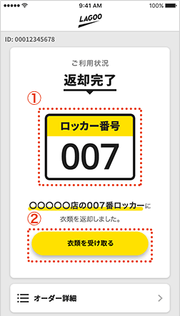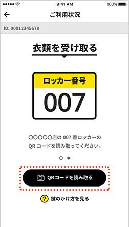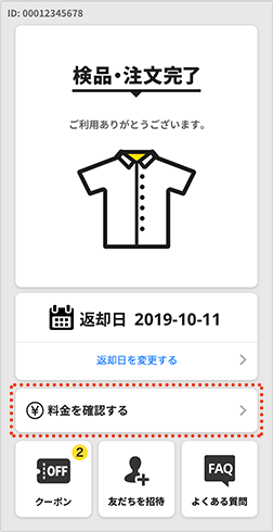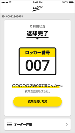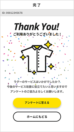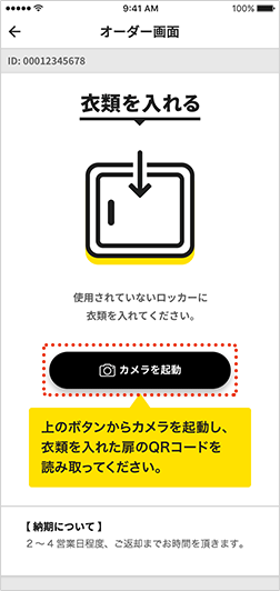 - 「衣類を受け取る」ボタンから受け取り作業をおこなってください。