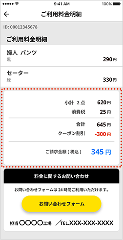 - 表示されている店舗のクリーニング料金を確認することができます。