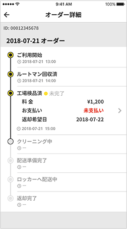 オーダー詳細が表示されます。工場検品済の項目をタップすると、