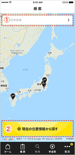 - 表示されている店舗をお使いのマップアプリで表示します。