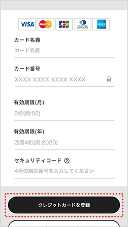 ※電話番号確認:プロフィールで電話番号を変更した場合にはSMS認証が入りますのでこの画面で6桁のコードを入力します。 - クレジットカードを変更したい場合に入力します。