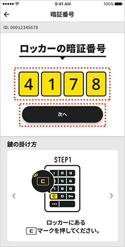 (鍵ボタンの下の小さな赤いLEDが点滅) - ロッカーに鍵をかけたら
